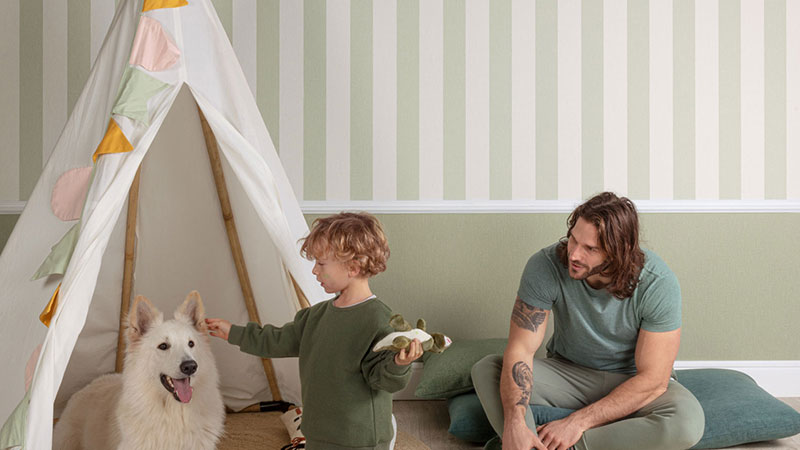 • Tapety, které zvládnou všechno. Pevný vliesový podklad zajišťuje snadné lepení i odstranění, zatímco vinylový povrch dodává vysokou odolnost proti oděru a vlhkosti. Skvělá volba do chodeb, kuchyní nebo obývacích pokojů, kde se stěny opravdu namáhají. Velký bonus? Snadná údržba – stačí otřít vlhkým hadříkem. Jak na to krok za krokem najdete v našem návodu na tapetování.