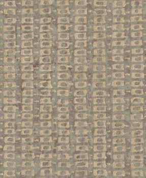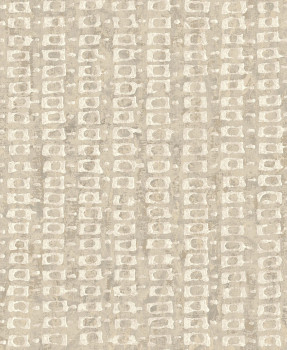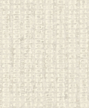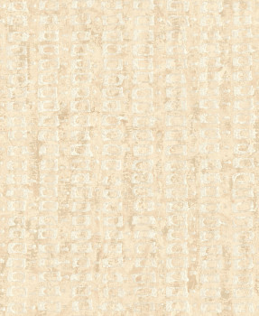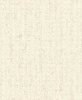 Luxusní metalická vliesová tapeta s plastickým krémovým geometrickým vzorem na podkladě imitující štukovou omítku.
