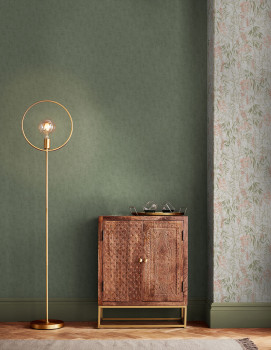 Jednobarevná pololesklá zelená vliesová tapeta na zeď.