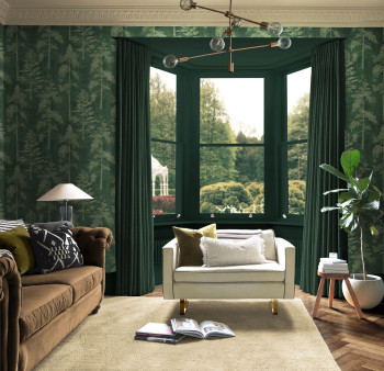 Zelená vliesová tapeta na zeď, motiv lesa, stromů.