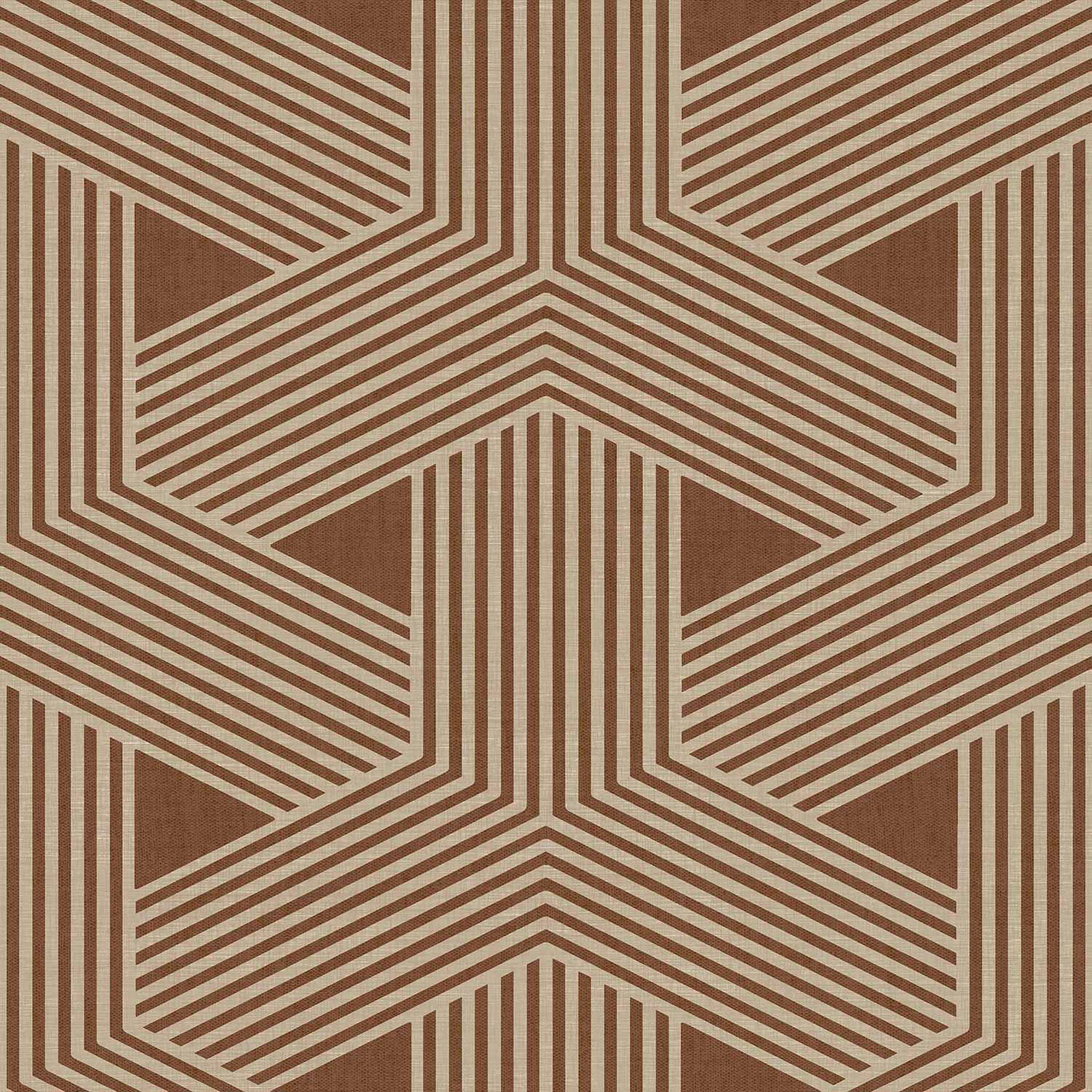 Luxusní vliesová tapeta na zeď s vinylovým povrchem a geometrickým obrazcem v hnědé a béžové barvě.