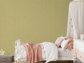 Luxusní vliesová tapeta na zeď s vinylovým povrchem ve žluté barvě s jemnou matnou látkovou texturou.