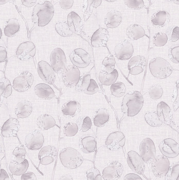Béžová vliesová tapeta s vinylovým povrchem s látkovou texturou, pololesklé větvičky a lístky.