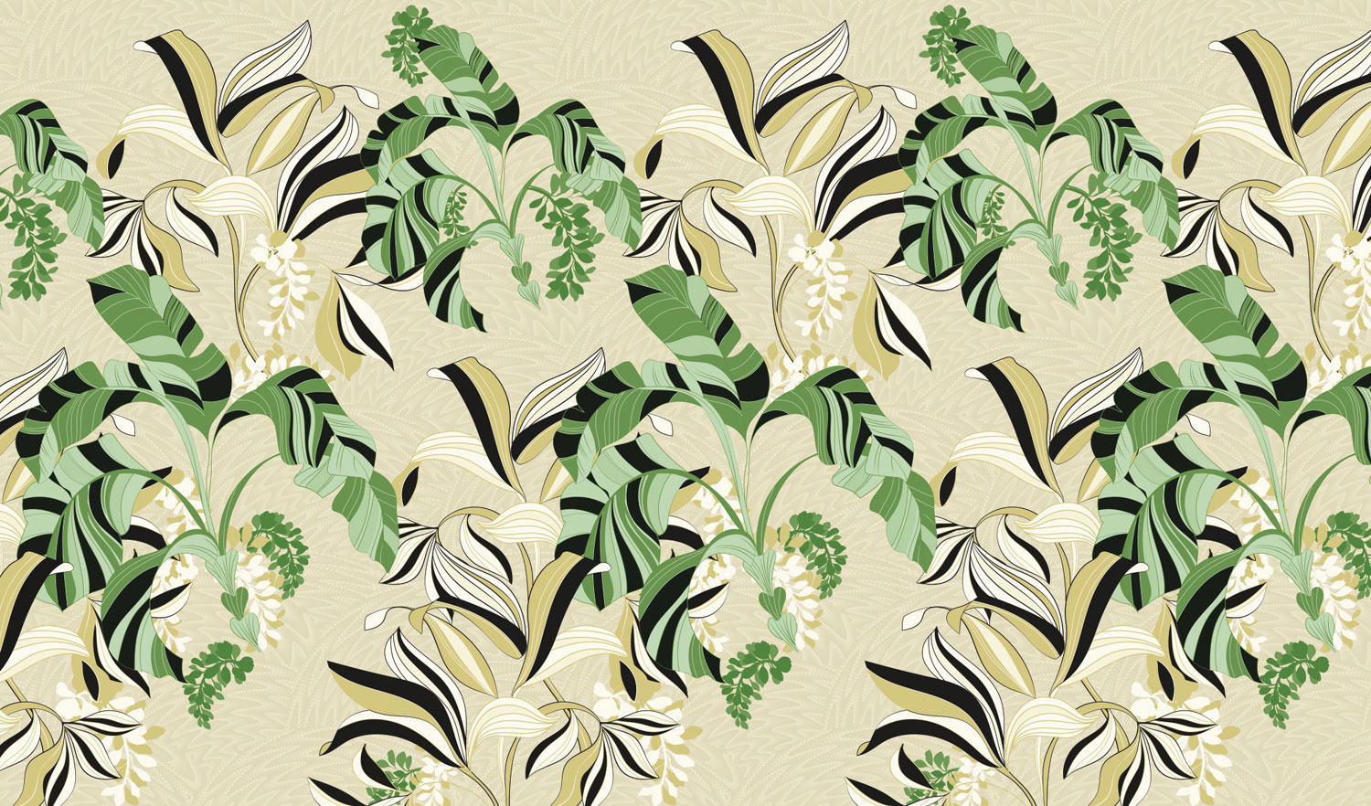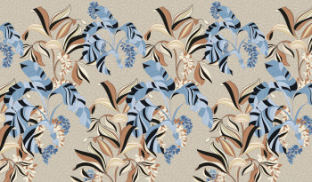 Luxusní vliesová obrazová tapeta s plastickým textilním povrchem, vzor květin a listů.