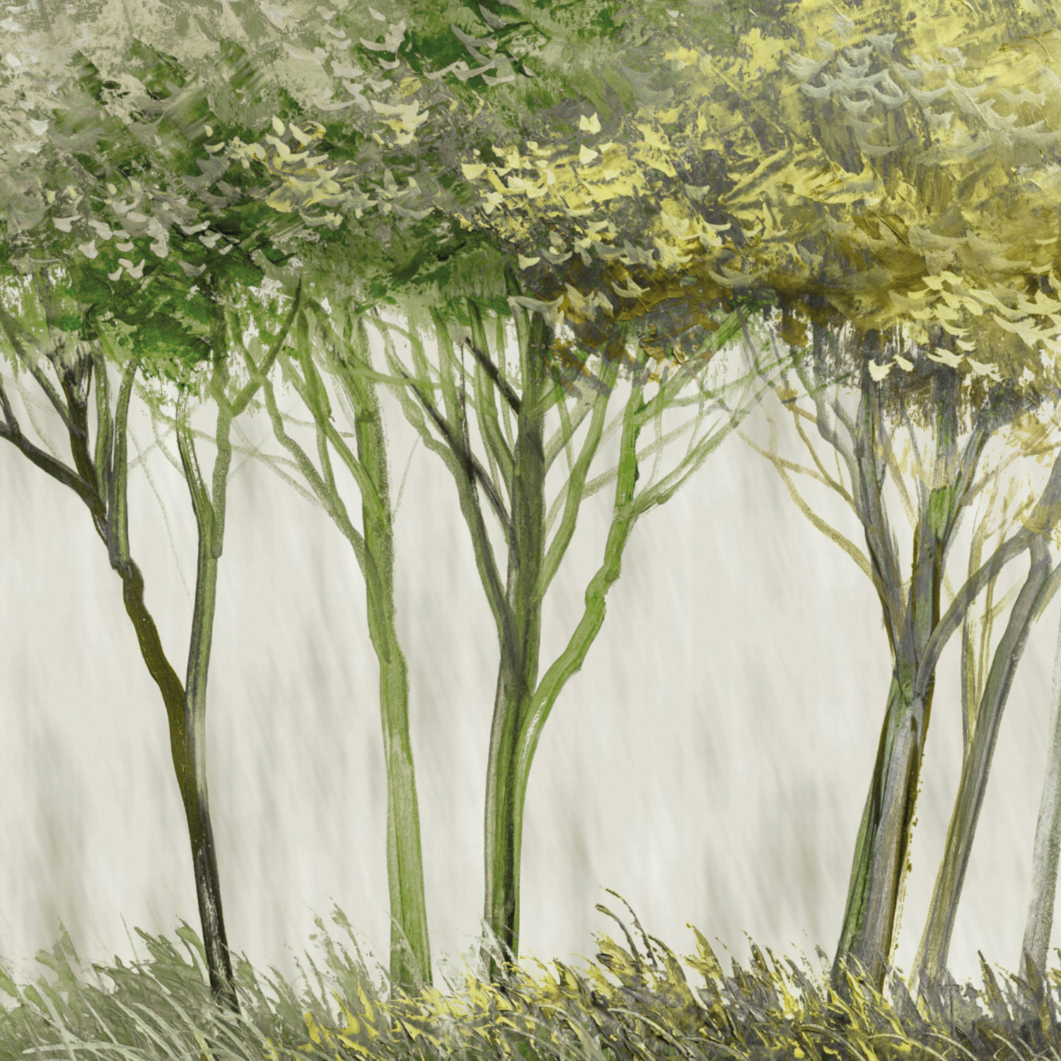 Luxusní vliesová obrazová tapeta s plastickým textilním povrchem, vzor stromů / lesa.