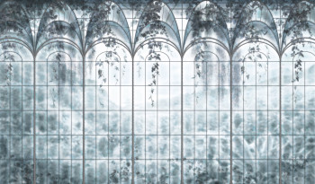 Luxusní vliesová obrazová tapeta s plastickým textilním povrchem, vzor zimní zahrada.