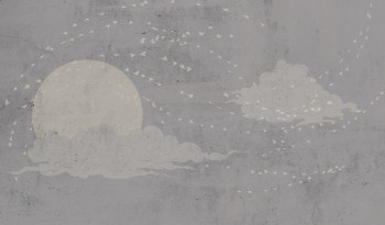 Luxusní vliesová obrazová tapeta s plastickým textilním povrchem, motiv letících ptáků.
