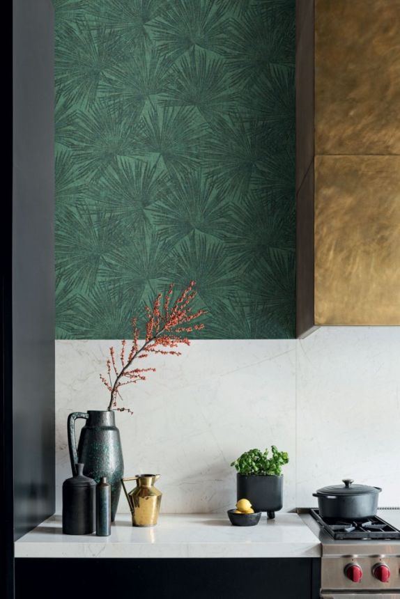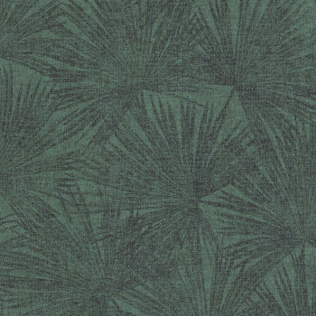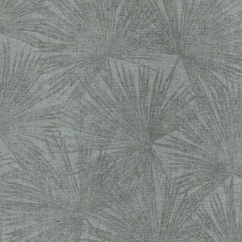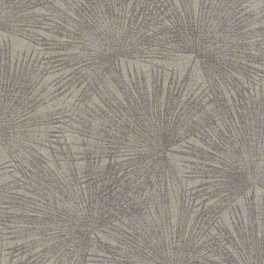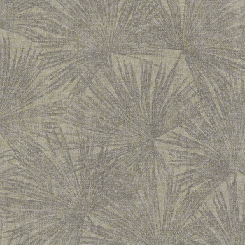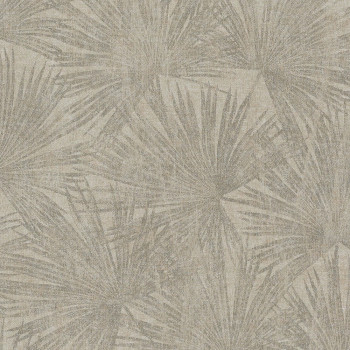 Vliesová tapeta s palmovými listy. Imitace hrubší látky, odstíny šedo-hnědé.