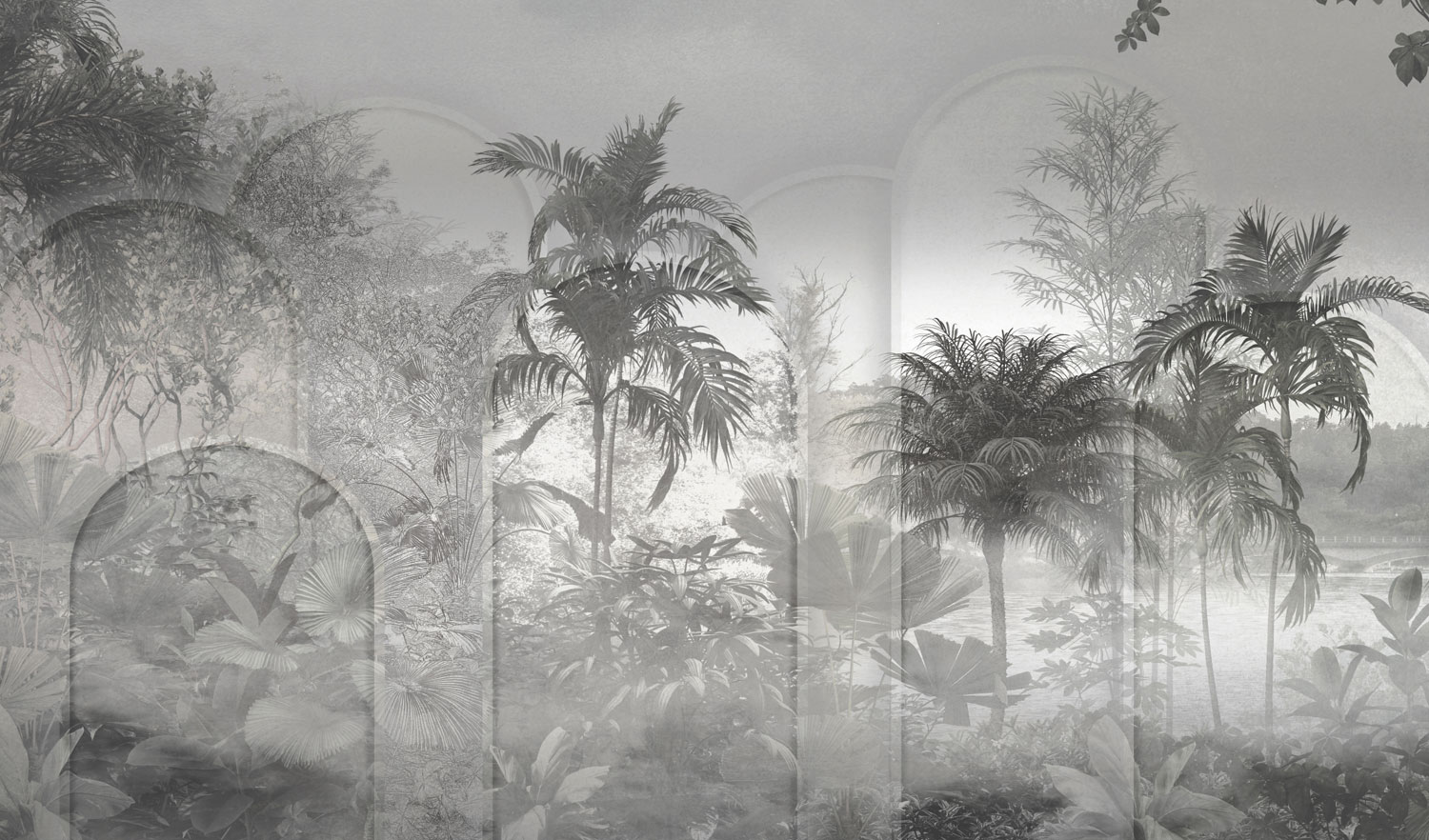 Luxusní vliesová obrazová tapeta s plastickým textilním povrchem, motiv tropického lesa.
