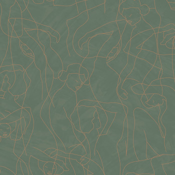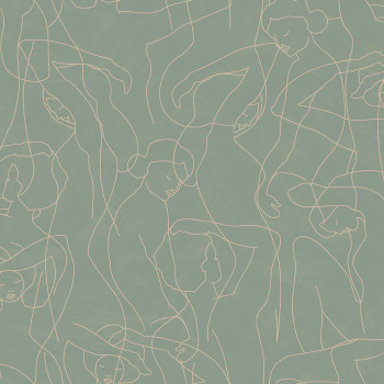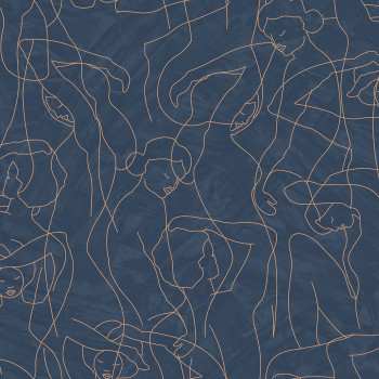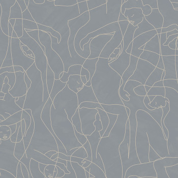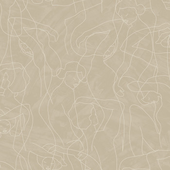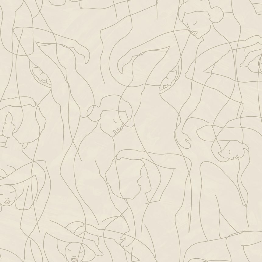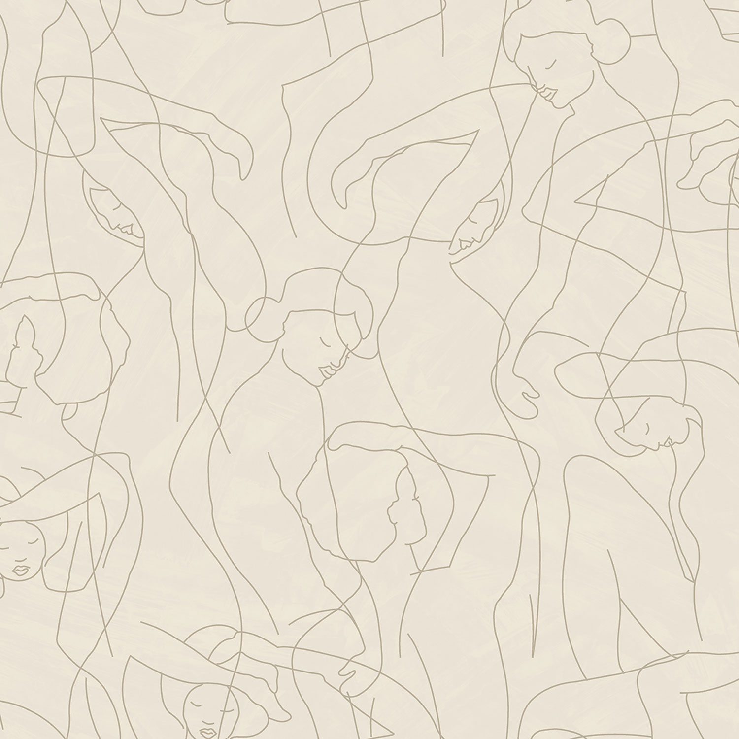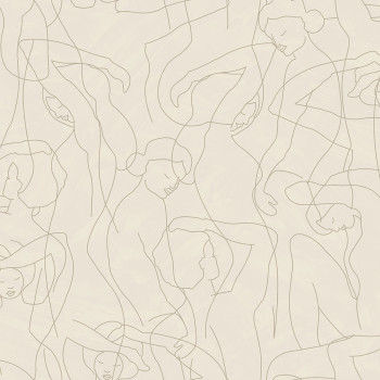 Hladká vliesová tapeta s vinylovým povrchem, krémový podklad, zlaté obrysy postav.