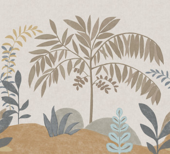 Vliesová tapeta s vinylovým povrchem, motiv krajiny v odstínech modré a hnědé.