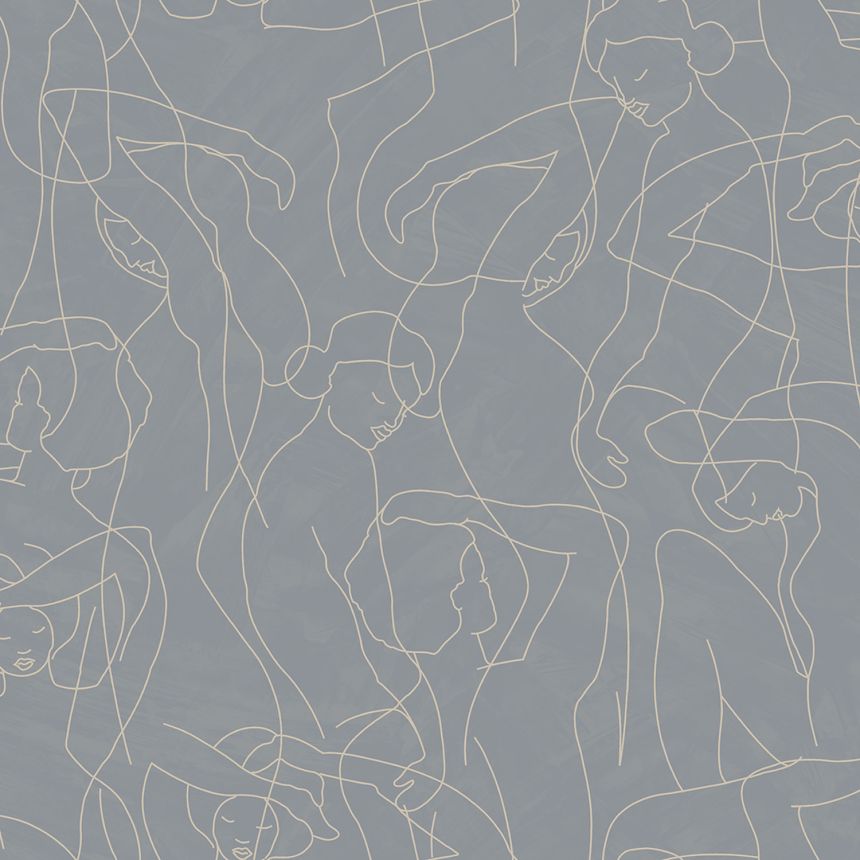Geometrická vliesová tapeta s vinylovým povrchem, odstíny šedé a šedo-modré.