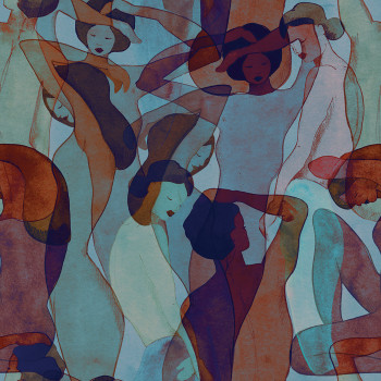 Vliesová tapeta s vinylovým povrchem, postavy v odstínech modré, zelené a hnědé.