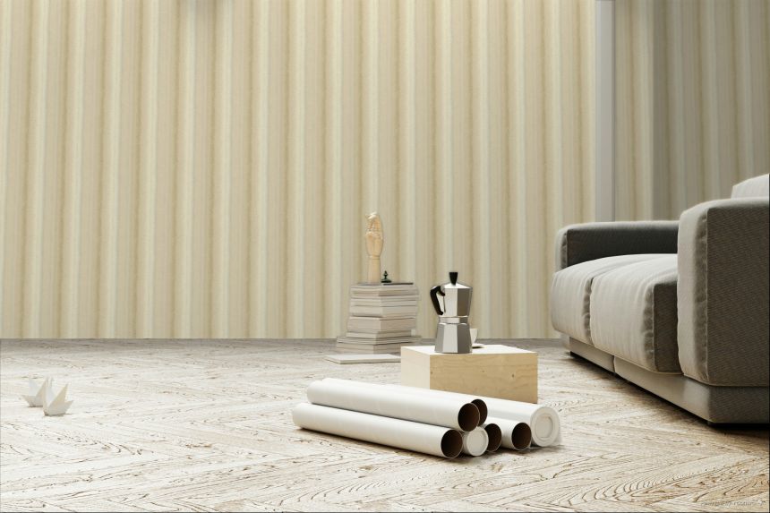Hnědo-stříbrná vliesová tapeta s vinylovým povrchem, textilní struktura.