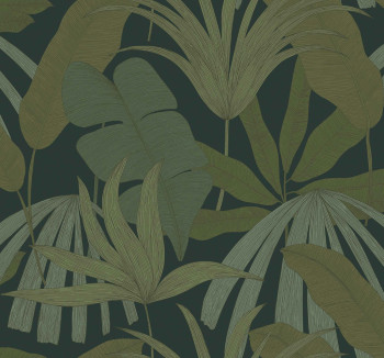 Hladká zelená vliesová tapeta na zeď, tropické palmové listy v odstínech zelené.