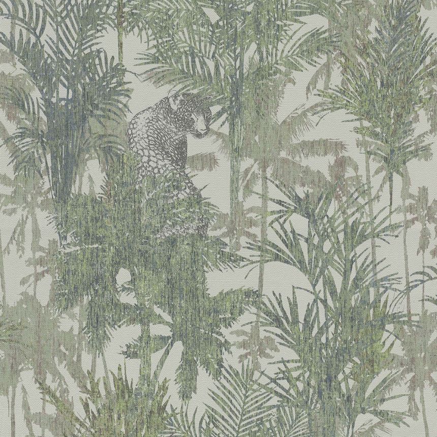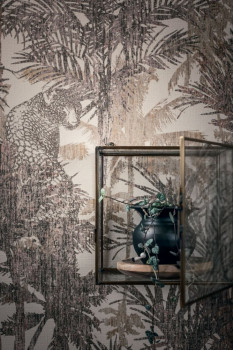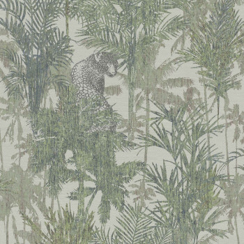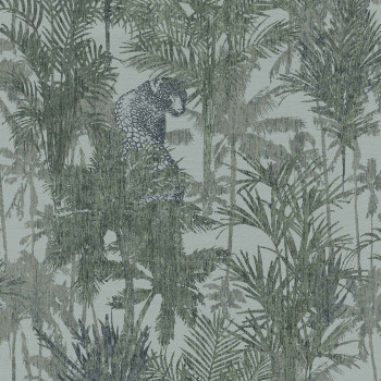 Vliesová tapeta imitace látky. Vzor tropických rostlin a divokých šelem.