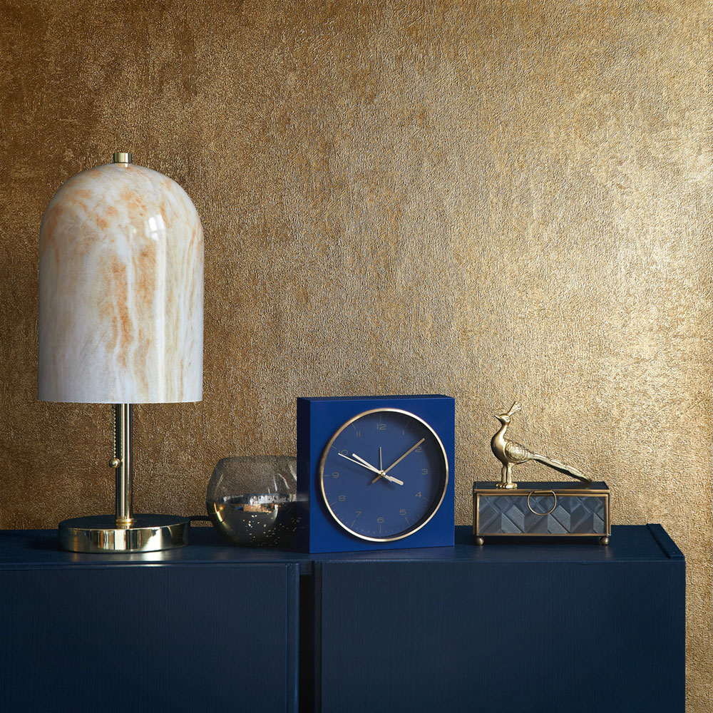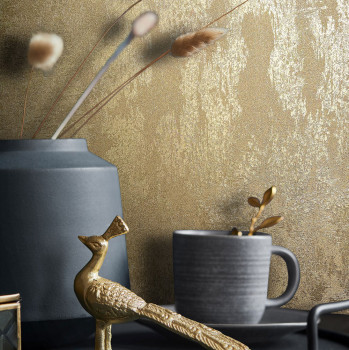 Vliesová tapeta s vinylovým povrchem, zlaté štukové omítky, mat a jemný pololesk, jemná textura.