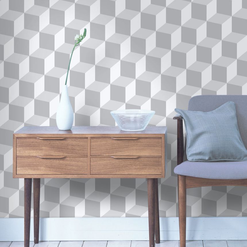 Šedo-bílá geometrická papírová tapeta na zeď.