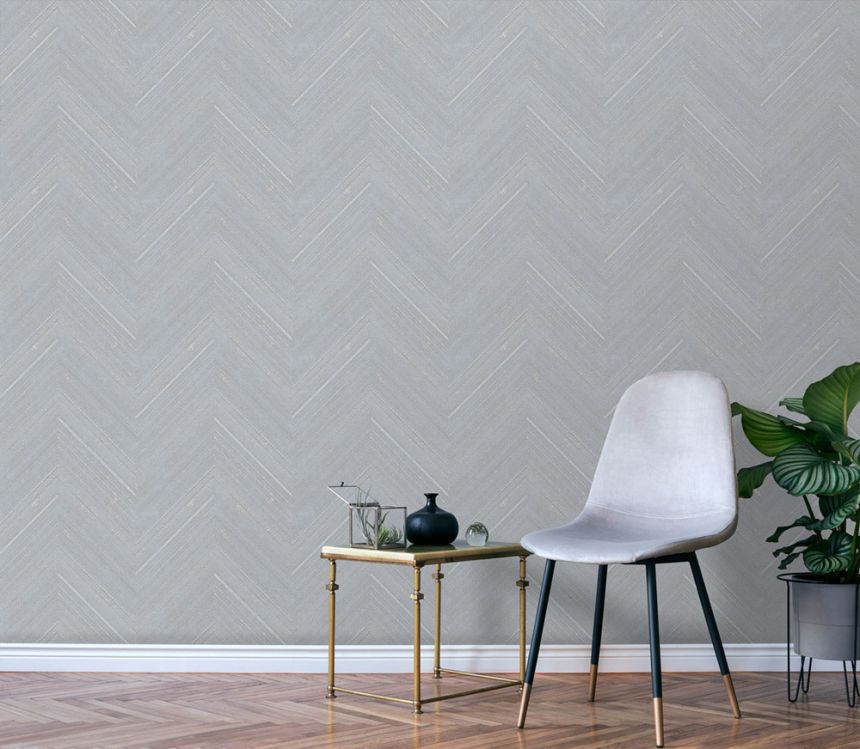 Vliesová tapeta s vinylovým povrchem, látková textura, cik cak vzor, odstíny modré a šedé.