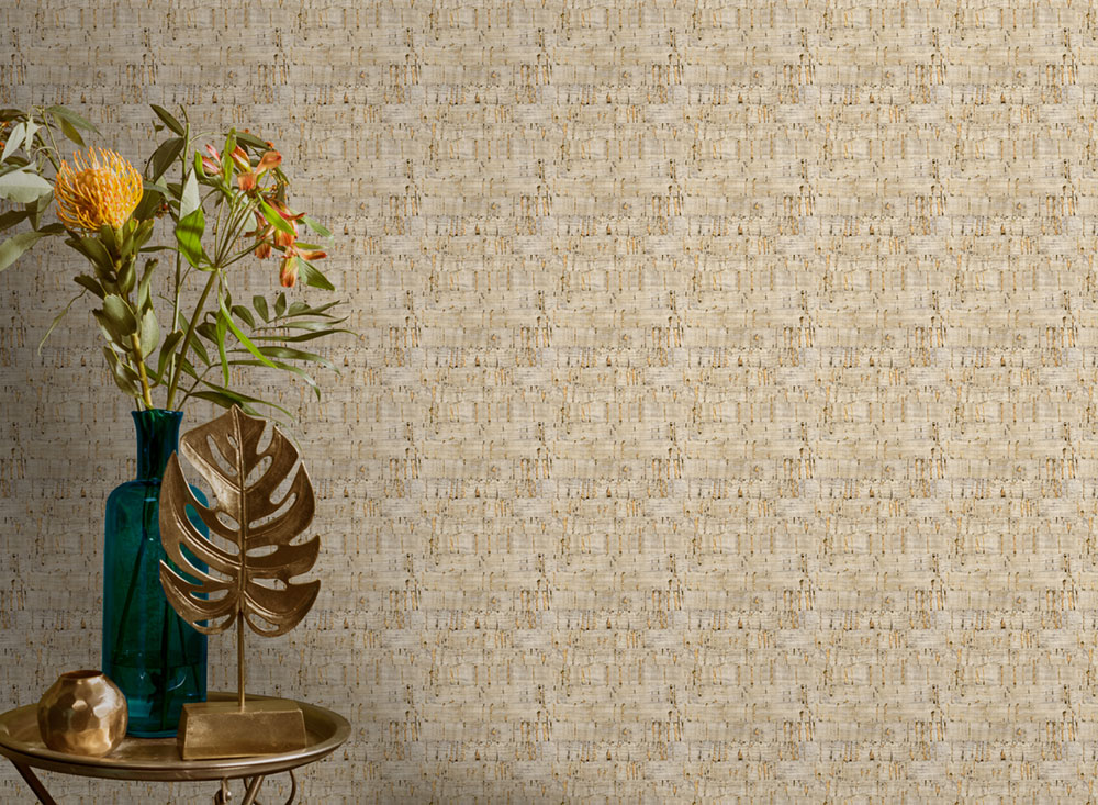 Vliesová tapeta s vinylovým povrchem, imitace korku, odstíny béžové, bronzové žíhání.