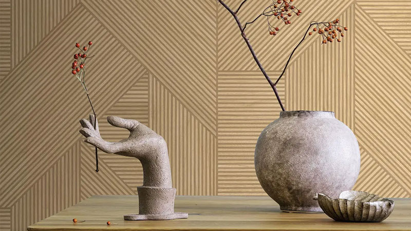 Kolekce vliesových s vinylovým povrchem tapet Reflect přináší do vašeho domova klid a harmonii. Obklopte se přírodními barvami – béžovou, šedivou, zlatou, zelenou, a hnědou. Tyto barvy, společně s pečlivě vybranými vzory, jako jsou geometrické vzory, florální motivy, imitace omítky a textury látek, vytvářejí atmosféru, která je ideální pro odpočinek a regeneraci.