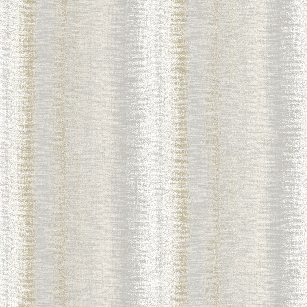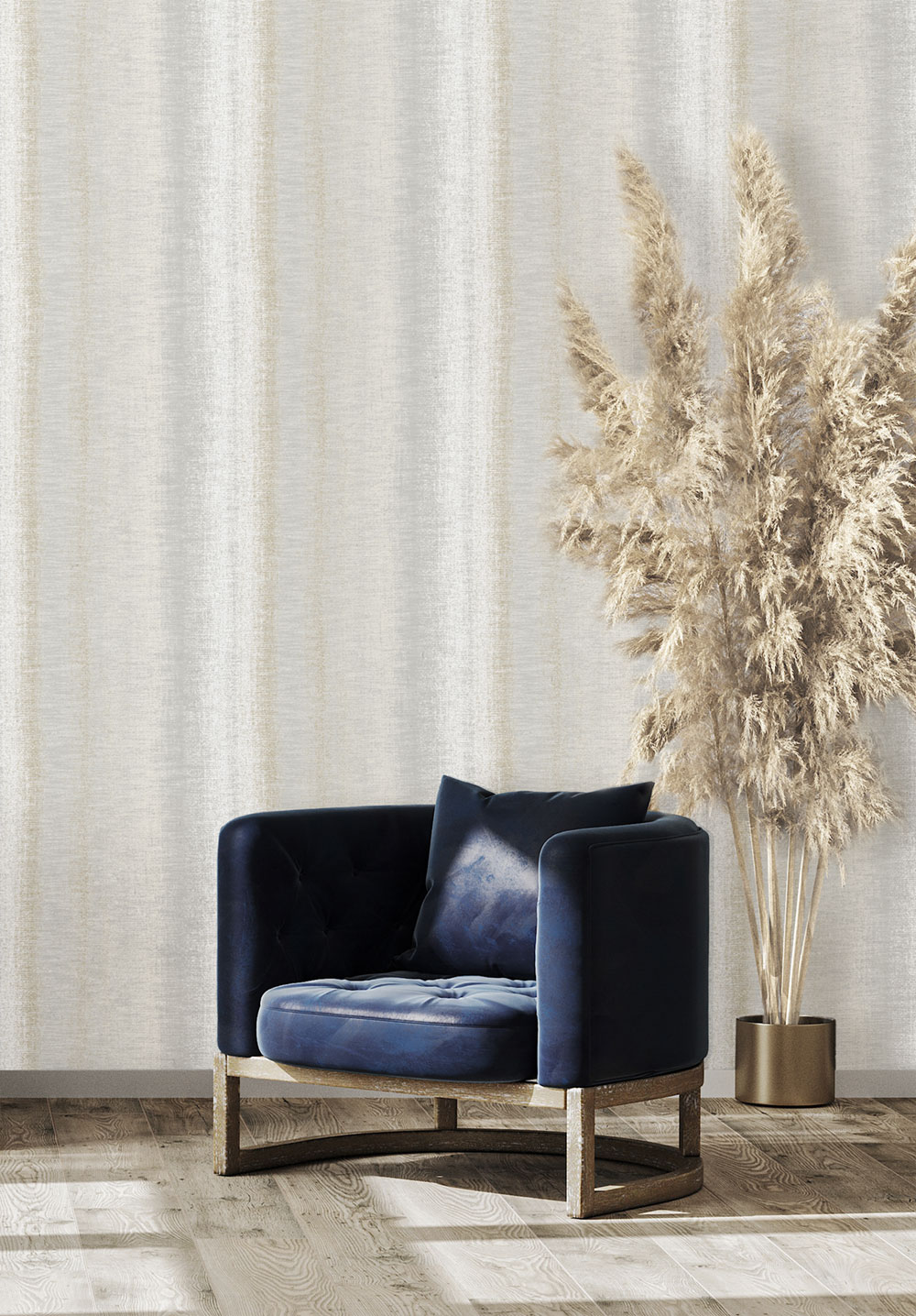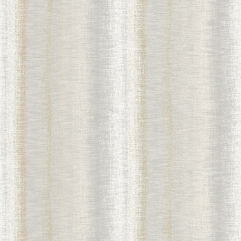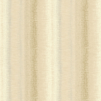 Jemně plastická, pruhovaná, šedo-béžovo-zlatá, vliesová tapeta s vinylovým povrchem.