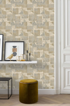 Jemně plastická šedo-okrová geometrická vliesová tapeta s vinylovým povrchem.