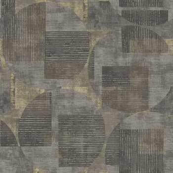 Jemně plastická, hnědo-šedo-černá, geometrická vliesová tapeta s vinylovým povrchem.
