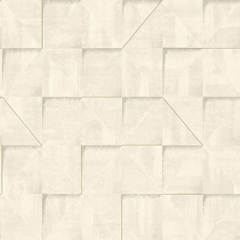 Jemně plastická béžová geometrická vliesová tapeta s vinylovým povrchem a zlatými akcenty. 3D imitace obkladů.