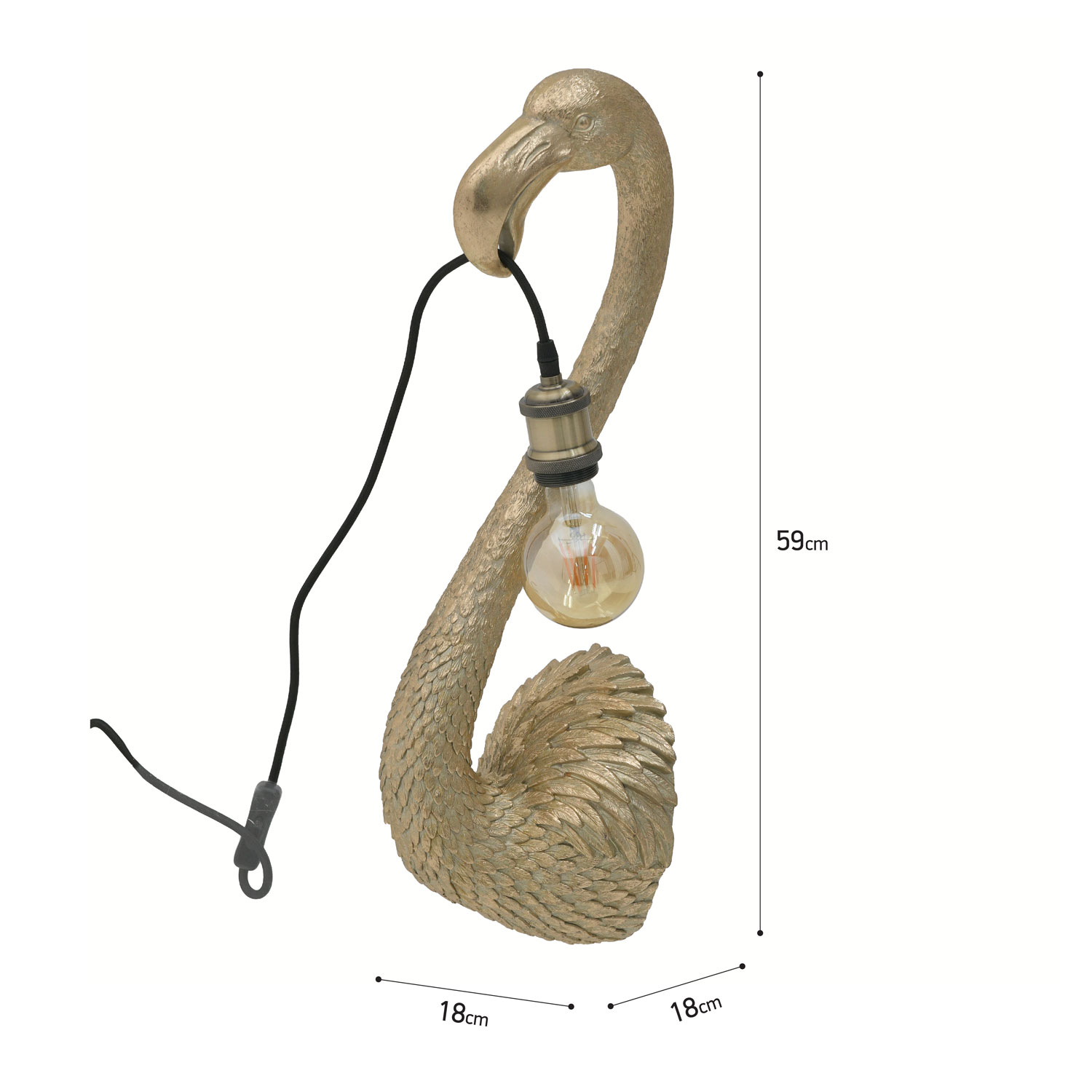 • ​​​​​​Zlatá nástěnná lampa ve tvaru plameňáka představuje dokonalý prvek pro váš interiér. Tento originální doplněk přinese do vašeho domova zábavný a stylový nádech.