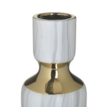 • Keramická váza se vzhledem mramoru a zlatými detaily je dokonalým způsobem, jak přidat do vašeho domova luxusní a elegantní prvek. Tento designový doplněk zvýrazní vaši kreativitu a přinese do interiéru nádech elegance.