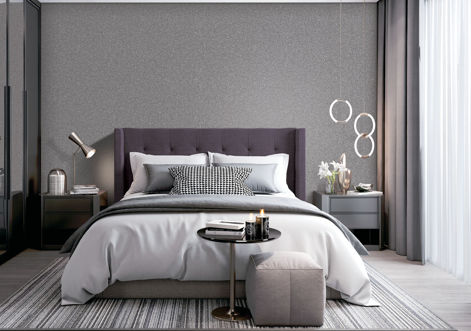 Luxusní vliesová tapeta se strukturou imitující minerální křemennou texturu s drobným leskem v šedé barvě. Podklad vlies, povrch omyvatelý vinyl.