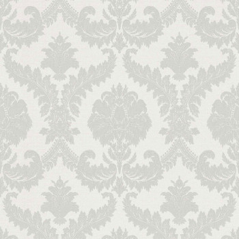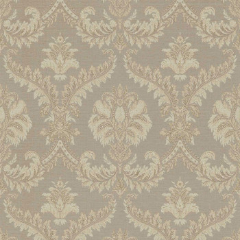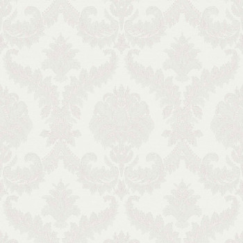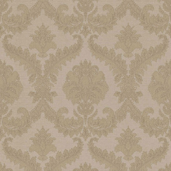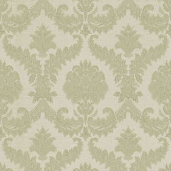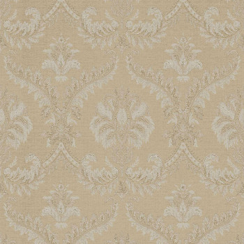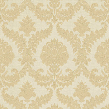 Luxusní pololesklá krémová / ecru vliesová tapeta s vinylovým povrchem, jemně plastický zámecký damaškový vzor.