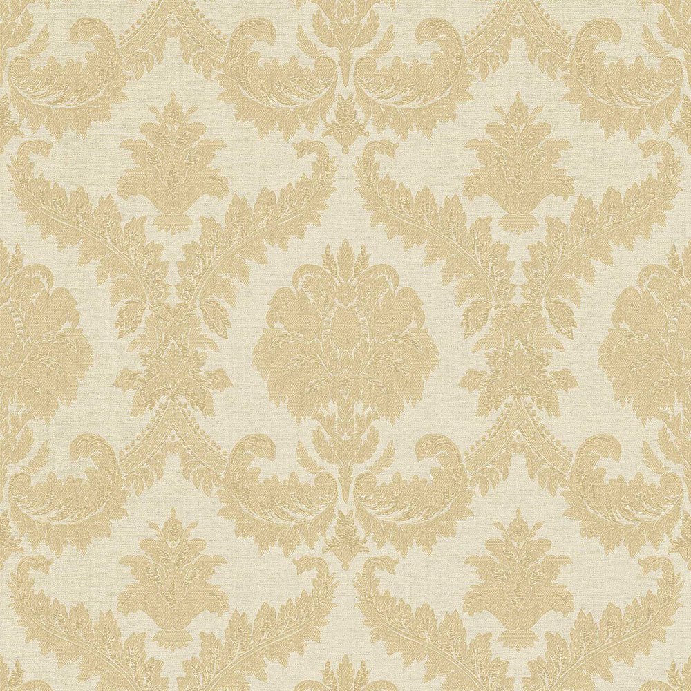 Luxusní zlato-béžová vliesová tapeta s vinylovým povrchem, jemně plastický, zlatý, zámecký damaškový vzor.