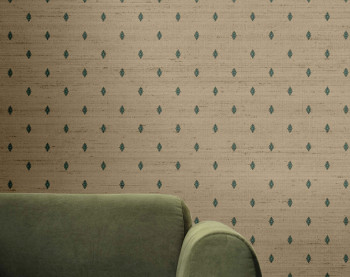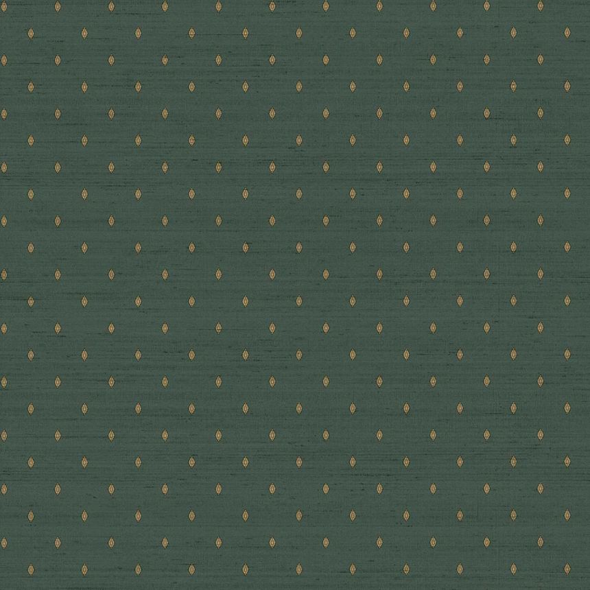 Luxusní zelená vliesová tapeta s vinylovým povrchem, imitace jemné textilie, zlatý vzorek diamant.