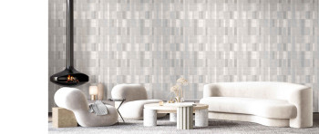 Luxusní, jemně plastická, vliesová tapeta s vinylovým povrchem, geometrický vzor v odstínech béžové a šedé.
