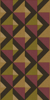 Geometrická viesová tapetová bordura s vinylovým povrchem, plastická textura. Odstíny vínové a hnědé.