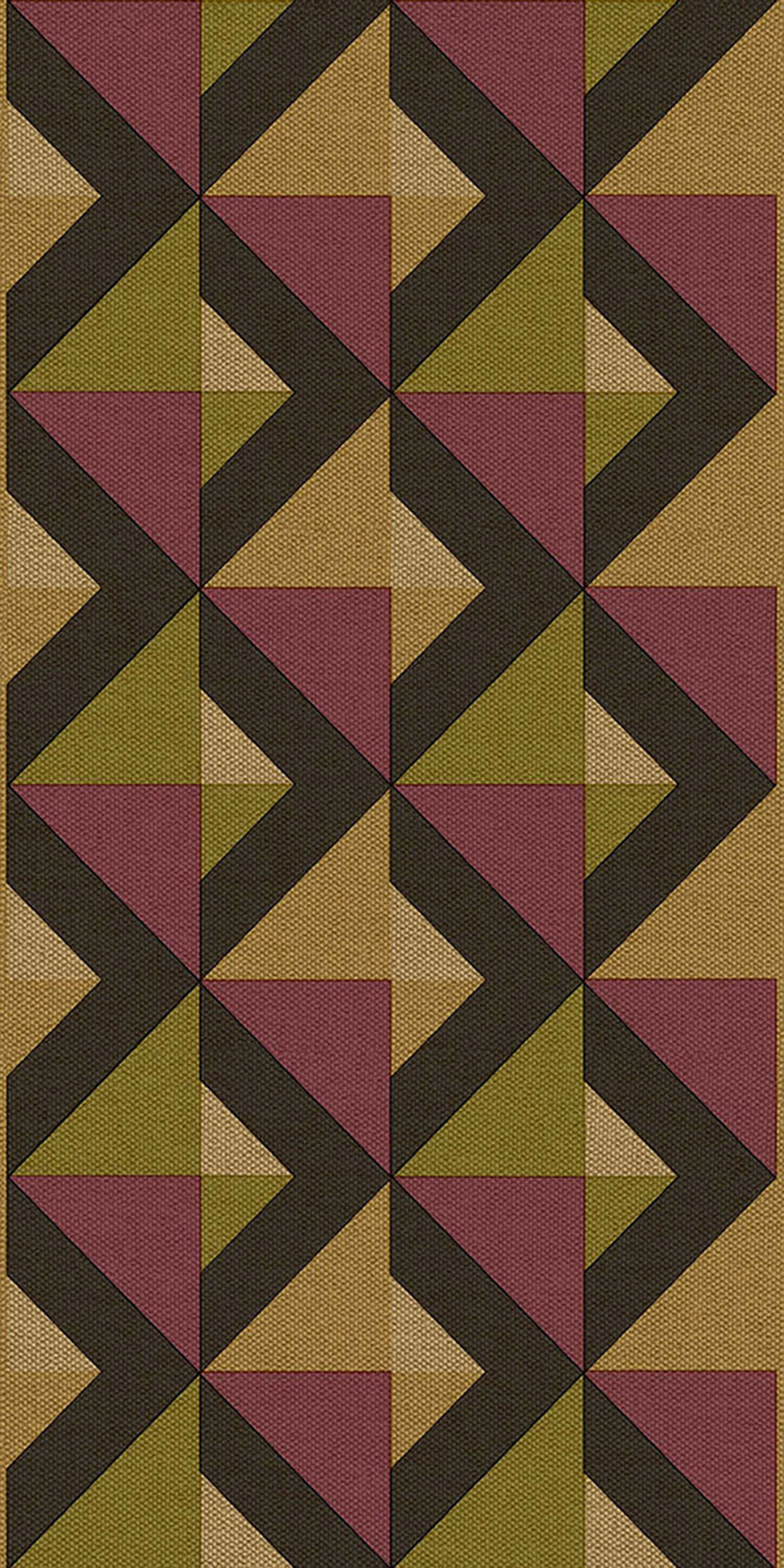 Geometrická viesová tapetová bordura s vinylovým povrchem, plastická textura. Odstíny vínové, zelené, hnědé a černé.