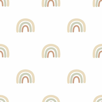 Bílá vliesová tapeta na zeď, duha v odstínech hnědé, zelené a zlato- béžové.