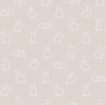 Šedá vliesová tapeta na zeď, bílé obrysy zajíčků.