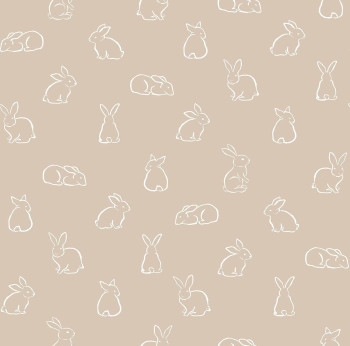 Béžová vliesová tapeta na zeď, bílé obrysy zajíčků.