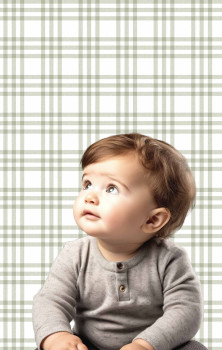 Zeleno-bílá károvaná vliesová tapeta na zeď.