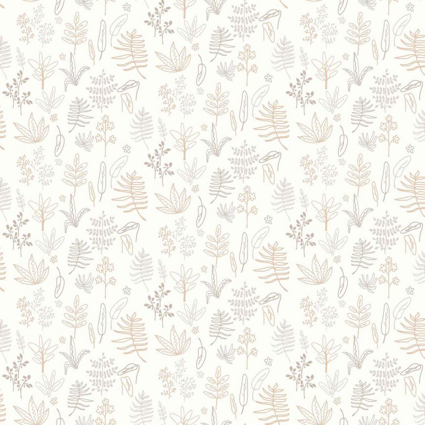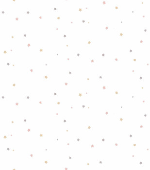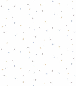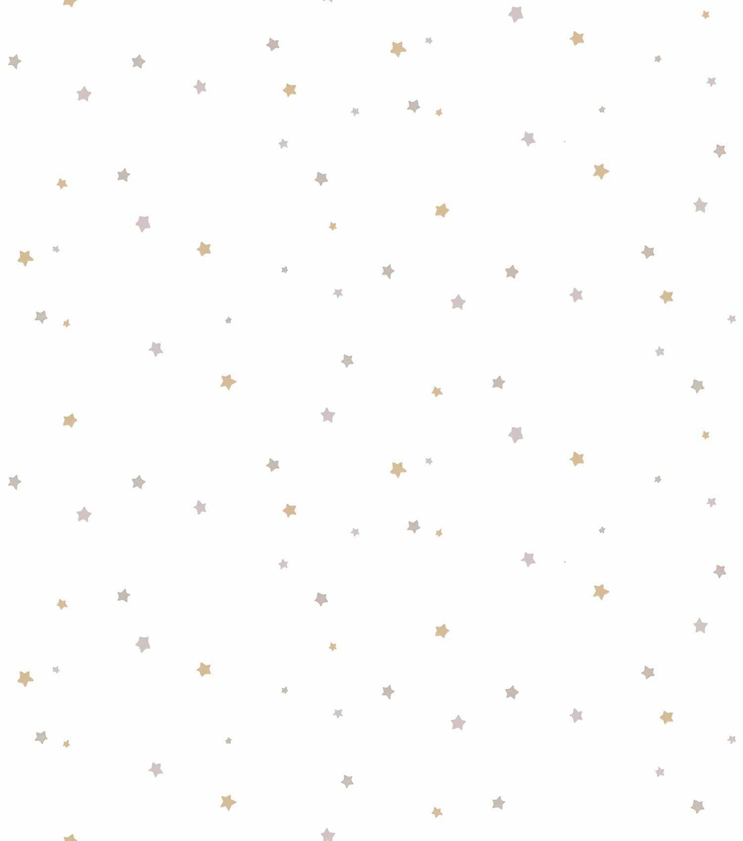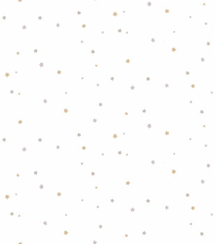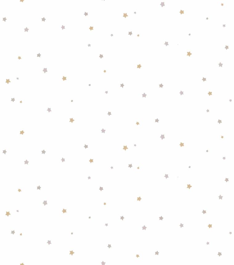 Bílá vliesová tapeta na zeď, hvězdičky v odstínech zlato-béžové a šedé.