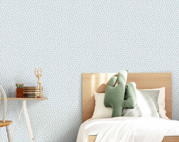 Modrá vliesová tapeta na zeď, vzor evokuje srst žirafy.