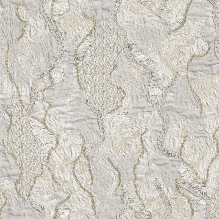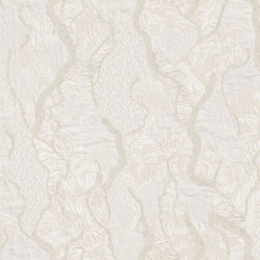 Luxusní krémová vliesová tapeta s vinylovým povrchem, plastický vzor s perlovými odlesky.