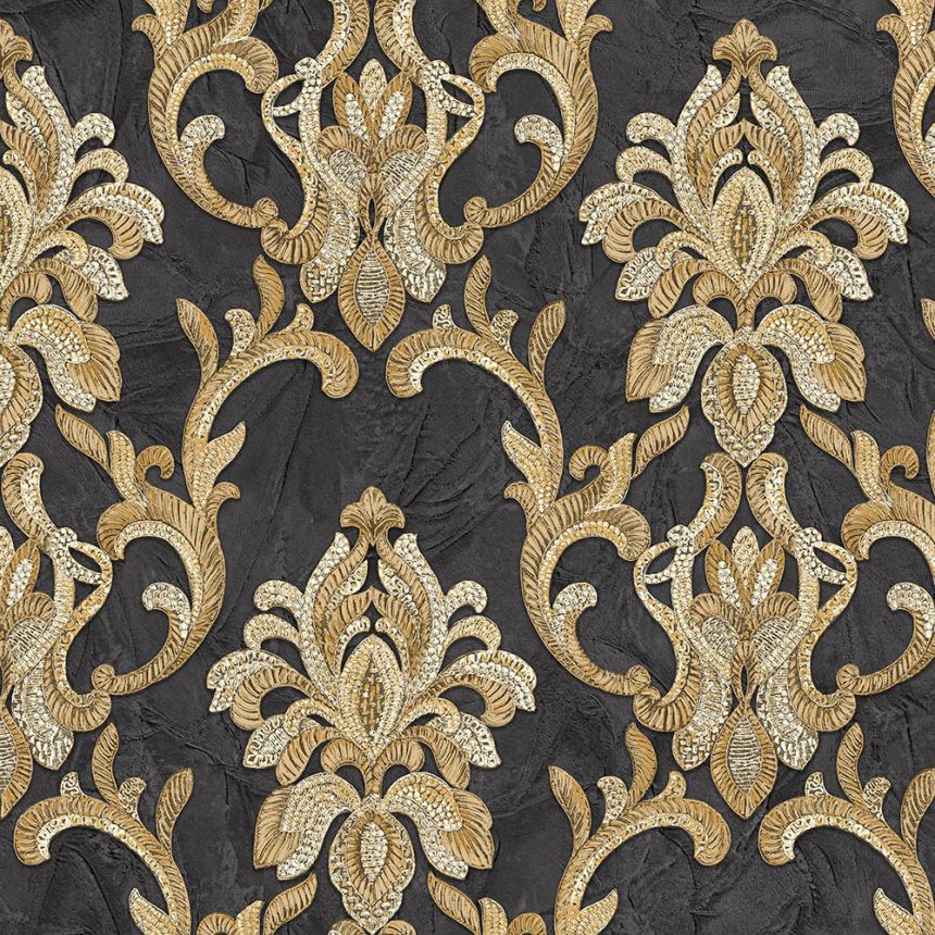 Luxusní, tmavě hnědá, vliesová tapeta s vinylovým povrchem; imitace historických štukových omítek.