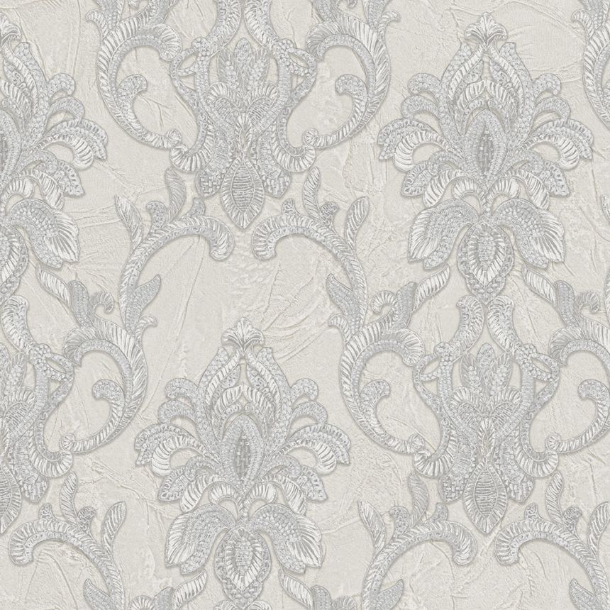 Luxusní šedá vliesová tapeta s vinylovým povrchem, imitace historických štukových omítek.