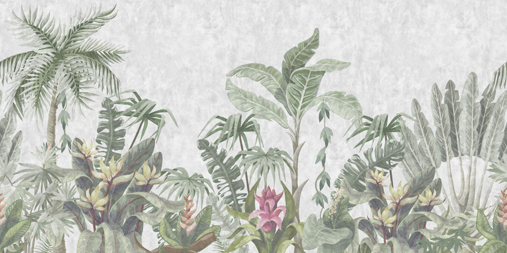 Luxusní vliesová obrazová tapeta na zeď, motiv palem a tropických rostlin.