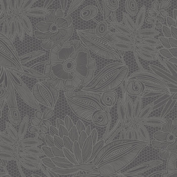 Jemně plastická, šedo-černá, vliesová tapeta na zeď, krajkový vzor.