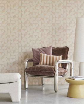 Béžová, jemně plastická vliesová tapeta na zeď, geometrický vzor v retro stylu.